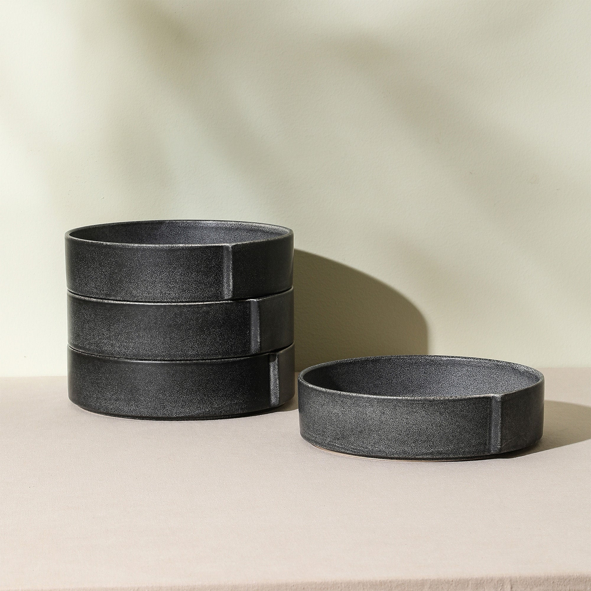 mercvo mercvoware Bowl – Charcoal | 4 – Piece mercvo of Nested Shallow Bowls with Matte Speckled Finish and Vertical Accent Line for Serving & Storage