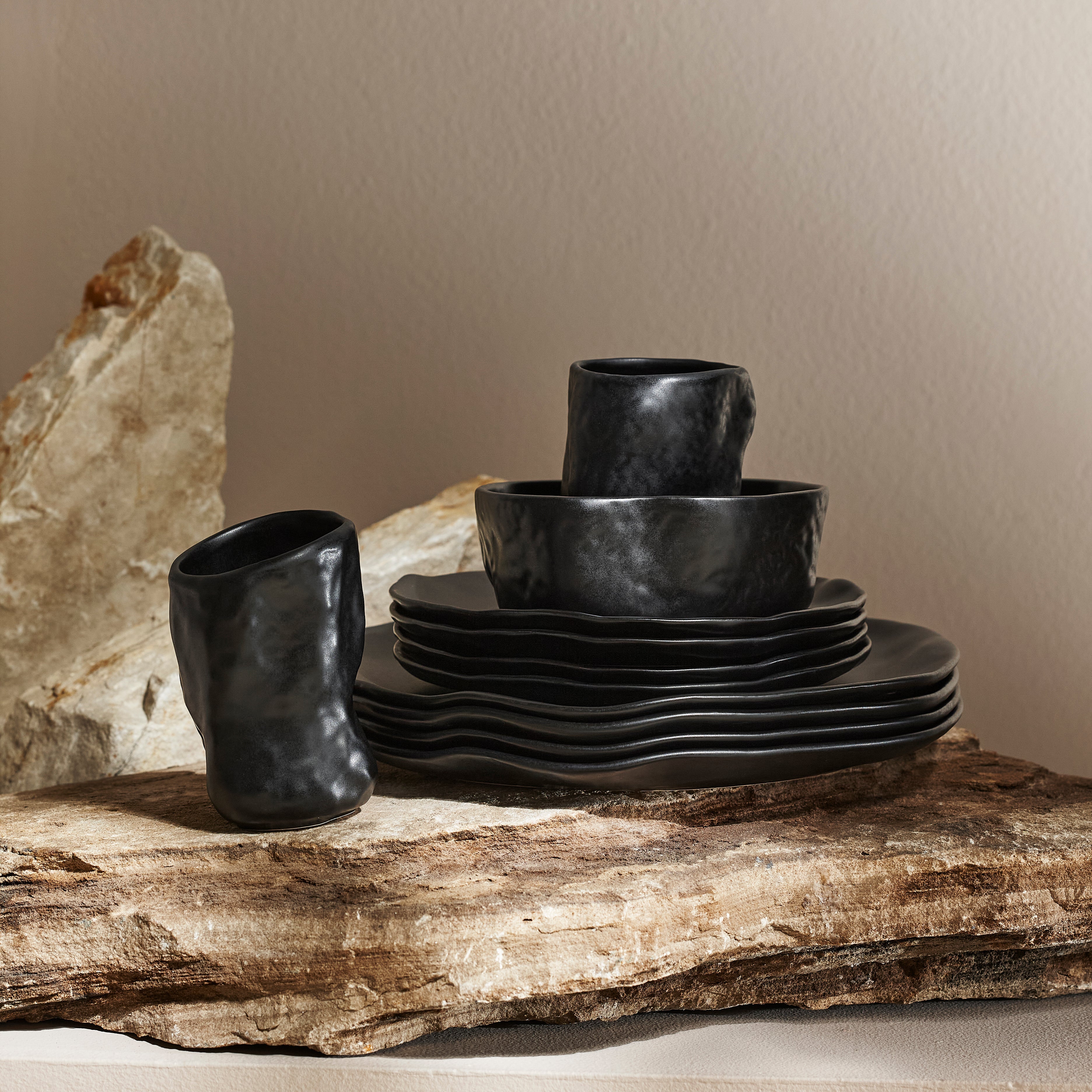 mercvo mercvoware Dinnerware mercvo – Black: Handcrafted Ceramic for 4 or 8, Unique Organic Design, Ideal for Dining & Decor