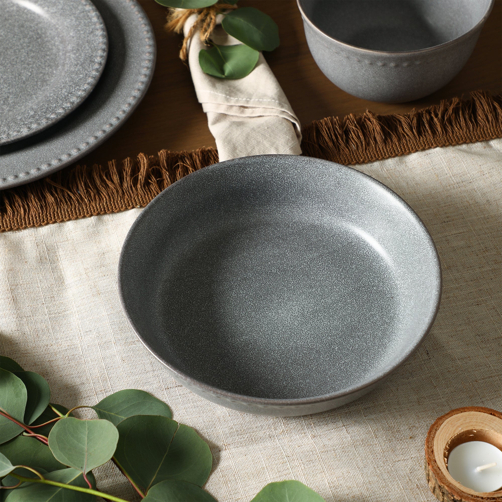 mercvo mercvoware Pasta Bowl mercvo – Grey | Ceramic Dinnerware for 4 or 8 | Microwave & Dishwasher Safe | Ideal for Daily Use & Gatherings