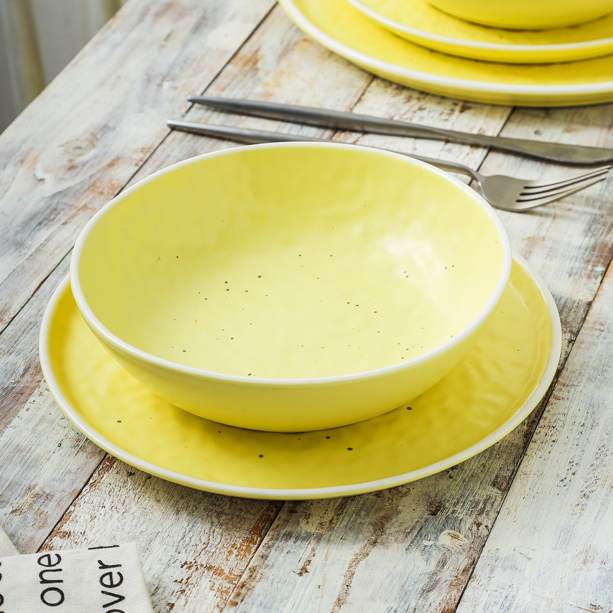 mercvo mercvoware Bowl – Yellow mercvo of 4: Bright Ceramic Bowls with Speckled Interior, White Rim, Stackable Design for Salads, Soups & More