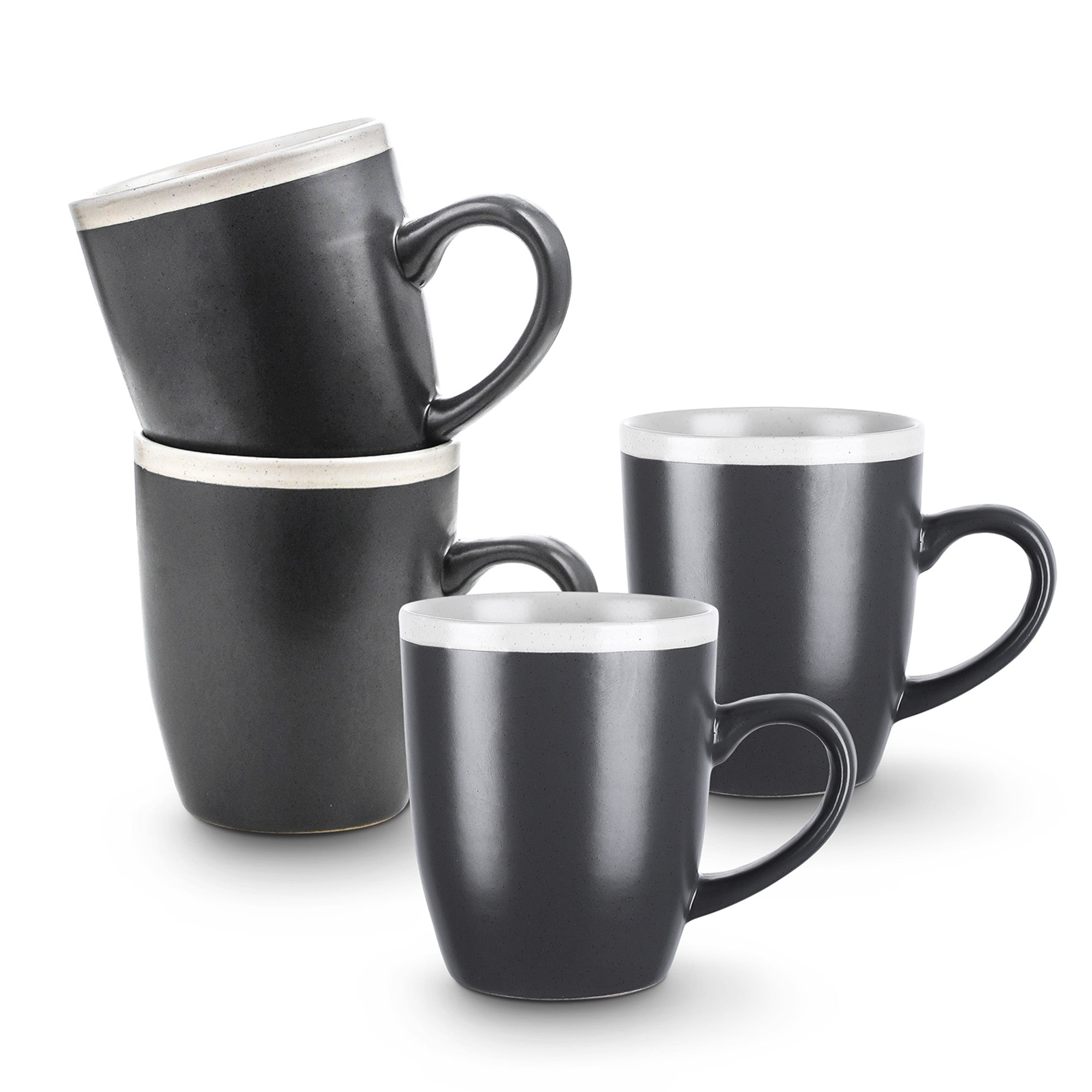 mercvo mercvoware Mug mercvo – 4 Dark Gray and Cream Ceramic Mugs, 12 – 16 oz, Dishwasher & Microwave Safe