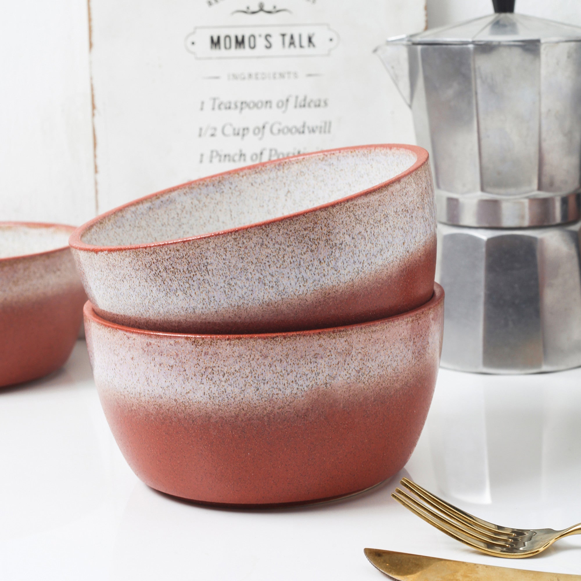 mercvo mercvoware Bowl mercvo – Red: 4 Stackable Ceramic Bowls with Ombre Effect for Dining and Kitchen Use