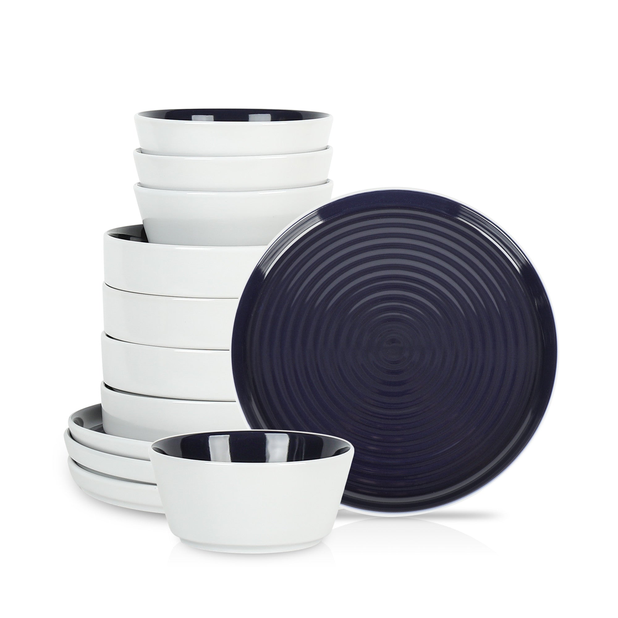 mercvo mercvoware Dinnerware mercvo in Navy And White – High – Quality Ceramic, Multiple Sizes, Service for 4 or 8