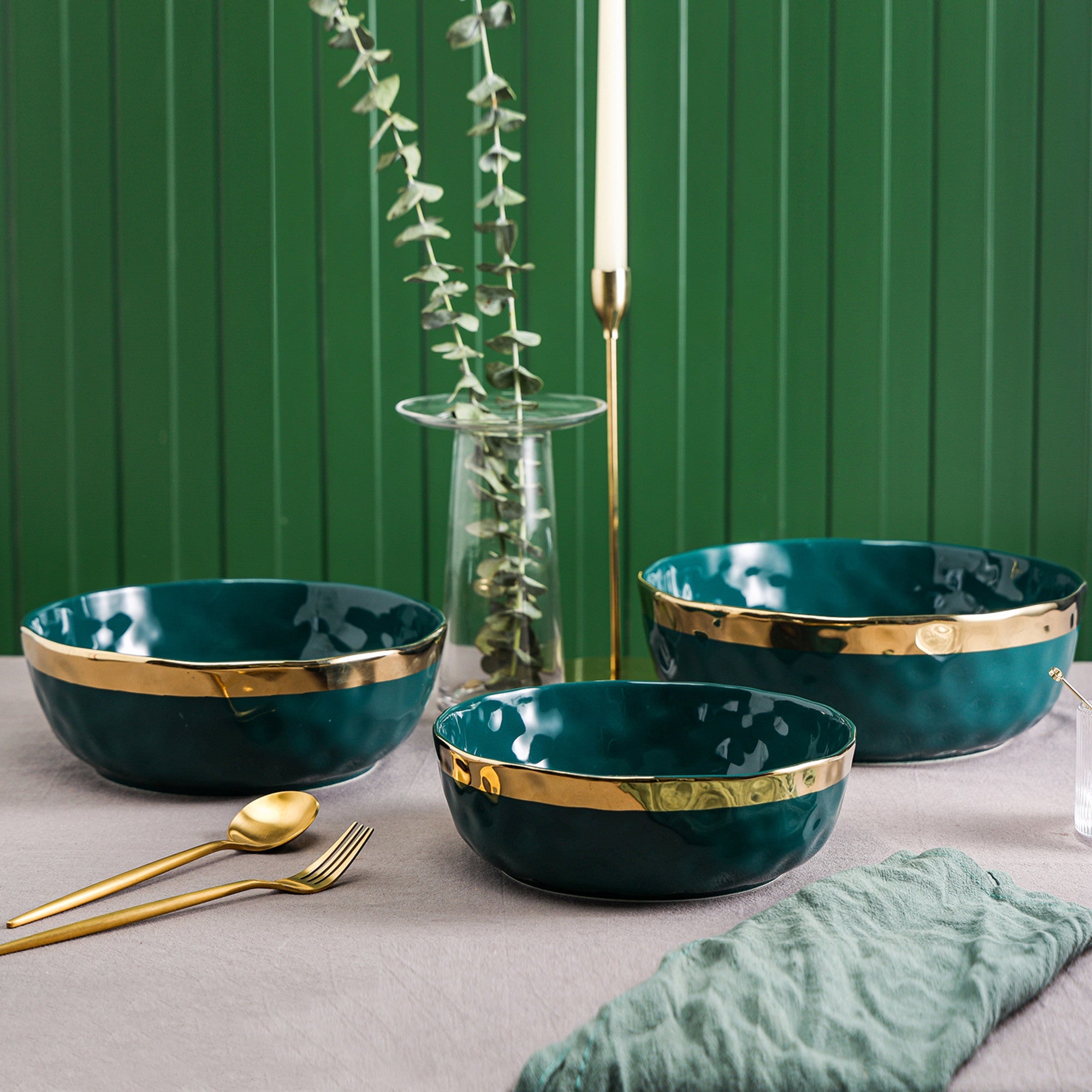mercvo Porcelain Service Bowl mercvo – Green: Luxury Ceramic Bowls with Gold Trim in Multiple Sizes for Dining and Decor