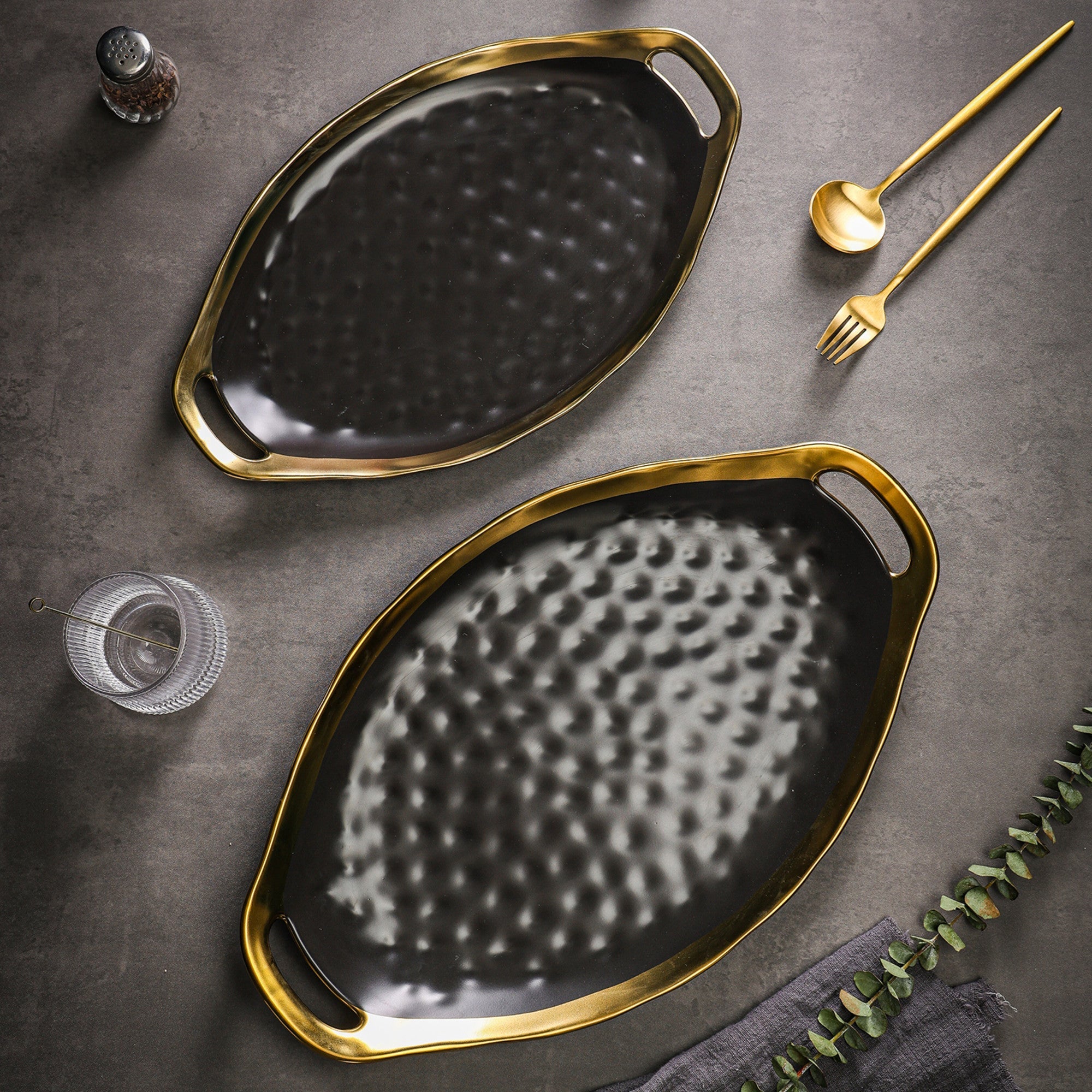 mercvo Porcelain Service Plate mercvo – Black #2: High – End Multi – Size Serving Platters with Luxury Gold – and – Black Design for Dining & Decor