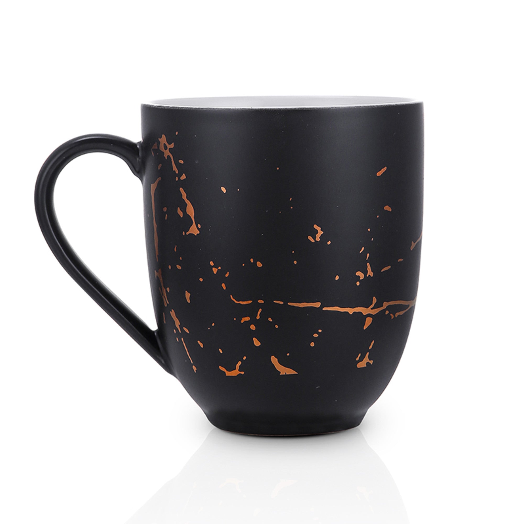 mercvo Porcelain Mug – Black mercvo of 4: Stylish Ceramic Mugs with Gold Splatter Patterns for Daily Use and Home Decor
