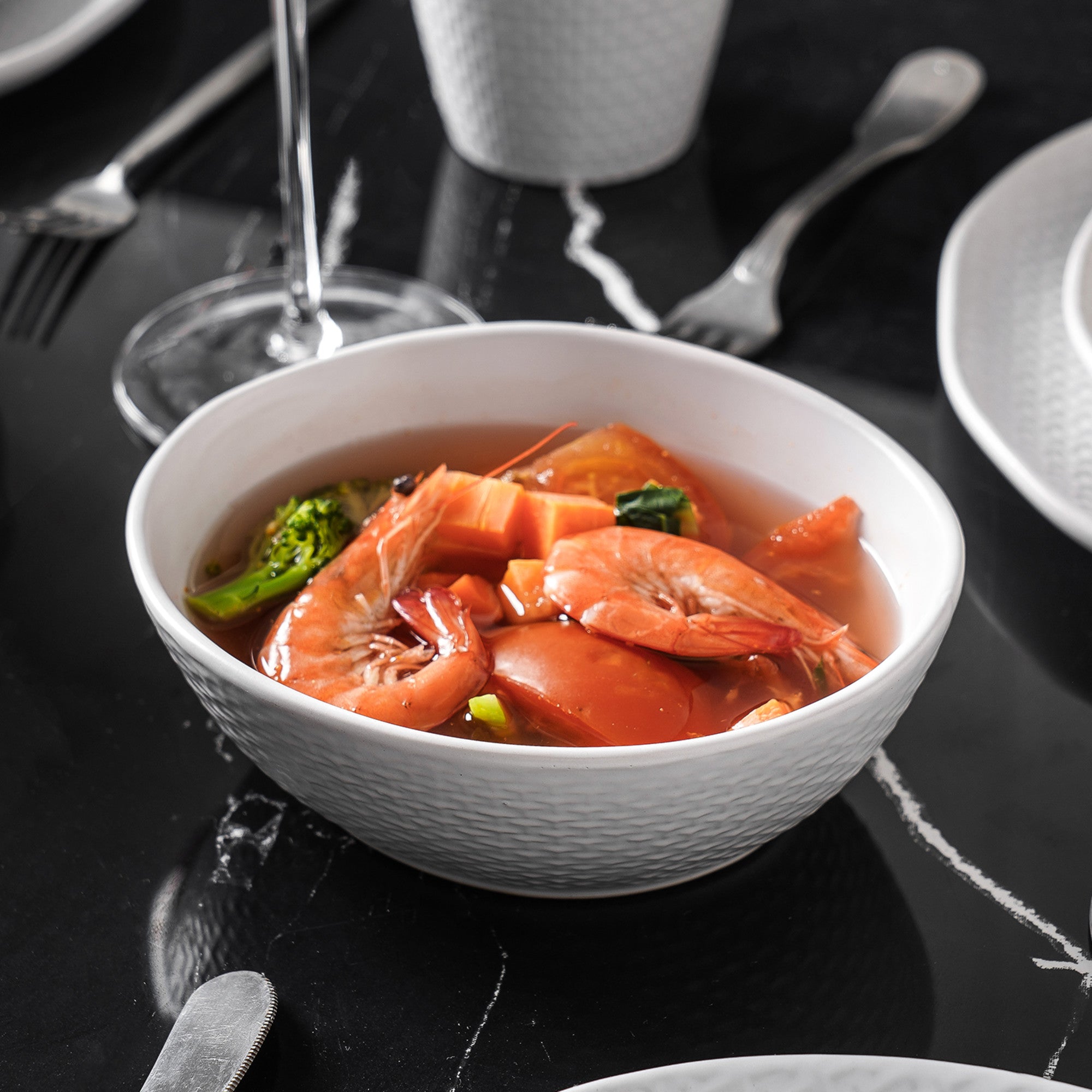 When it comes to quality, these bowls are top – notch. The craftsmanship is evident in the even texture application, smooth edges, and uniform white finish. There are no visible chips, cracks, or uneven glazing. The consistent thickness and stacking stability suggest long – term use without warping or cracking, and the polished, scratch – resistant surface ensures they will look great for years to come. Plus, they are 100% dishwasher and microwave safe, offering easy cleaning and durability.