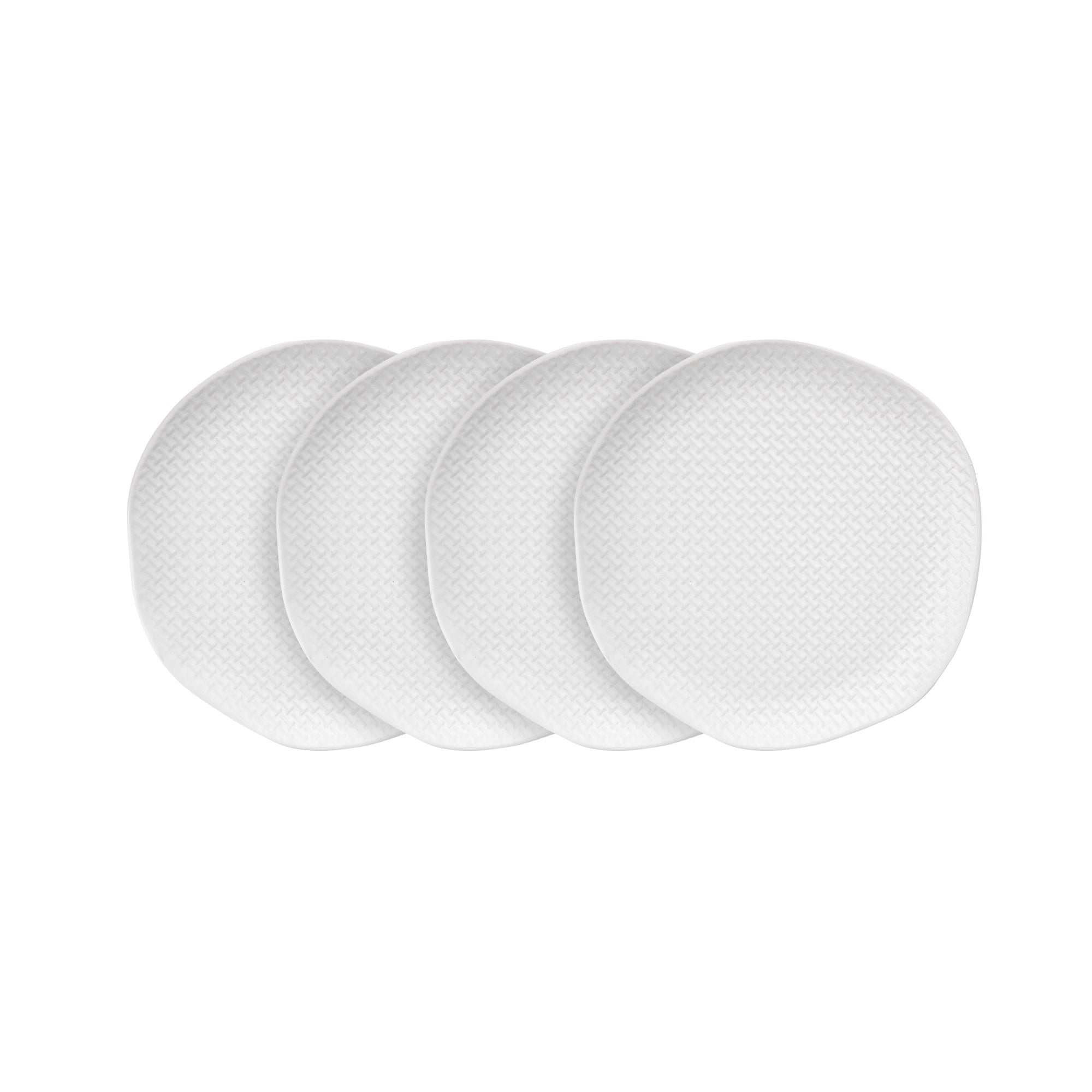 The plates feature a pure white color, which is incredibly versatile and can complement any table setting, whether it’s a formal dinner or a casual meal. The subtle, raised woven/grid – like embossed texture on the surface not only adds visual interest and depth but also serves a practical purpose. It prevents food from sliding, making it perfect for serving a variety of dishes like pasta, salads, and entrees.