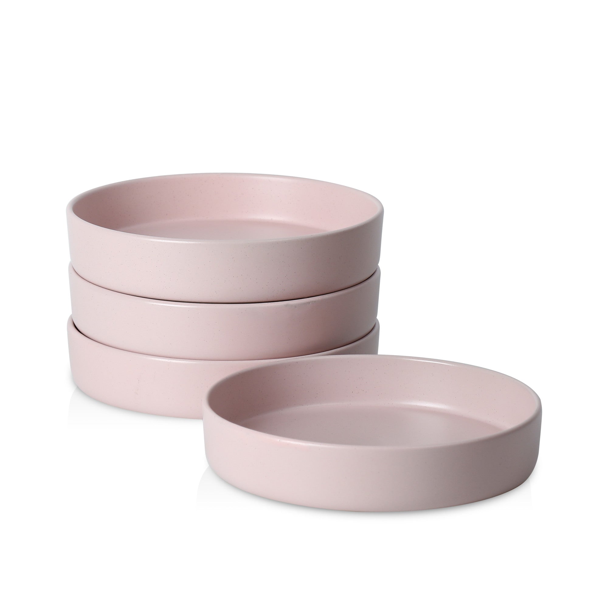 The bowl is crafted from ceramic or stoneware, which is known for its durability, heat – resistance, and ease of cleaning. The soft, muted blush pink color gives it an elegant and contemporary look, while the subtle speckled texture adds a unique visual interest without compromising the minimalist aesthetic. The solid color and smooth, uniform rim around the edge contribute to its clean and modern design.