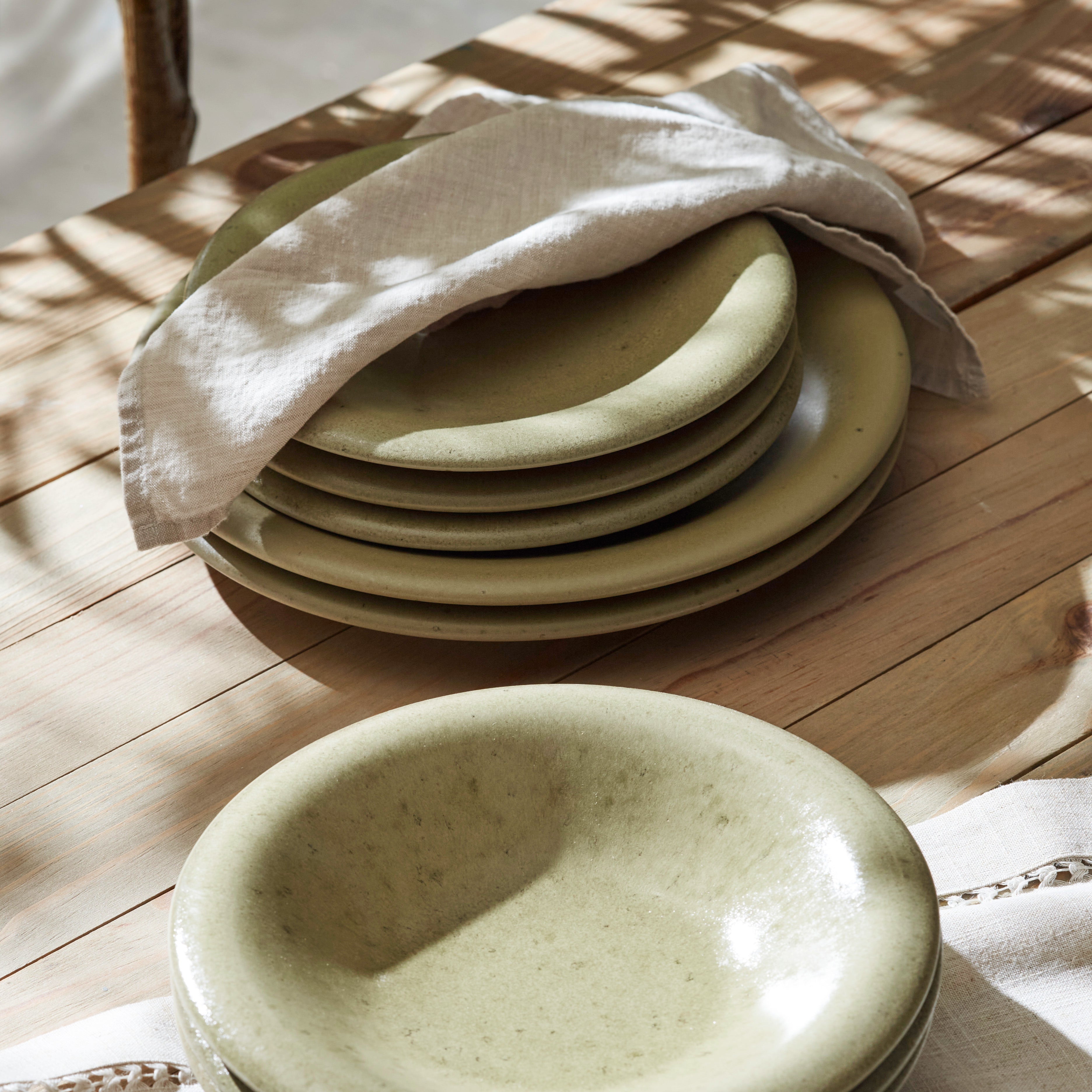 Made from high – quality ceramic or stoneware, this dishware set is built to last. The smooth, matte finish has a subtle speckling, giving it a rustic, handmade look. The muted sage green color, with its natural variations in tone, creates a relaxed and inviting atmosphere, making it suitable for both everyday meals and special occasions.