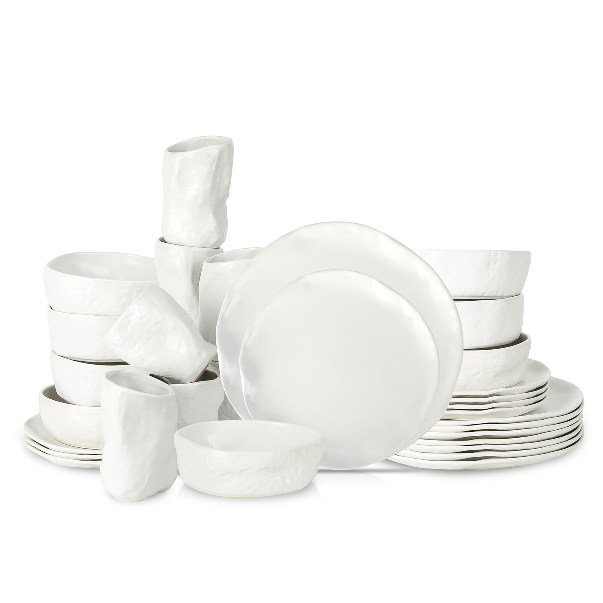 Introducing the mercvo mercvoware Dinnerware mercvo – White, a handcrafted masterpiece from mercvo by Mercer, a creation of The Mercer Project. This set quite literally brings art to your dining table, paying homage to the organic, irregularly – shaped objects of our ancestors and celebrating the enduring beauty of our collective heritage.