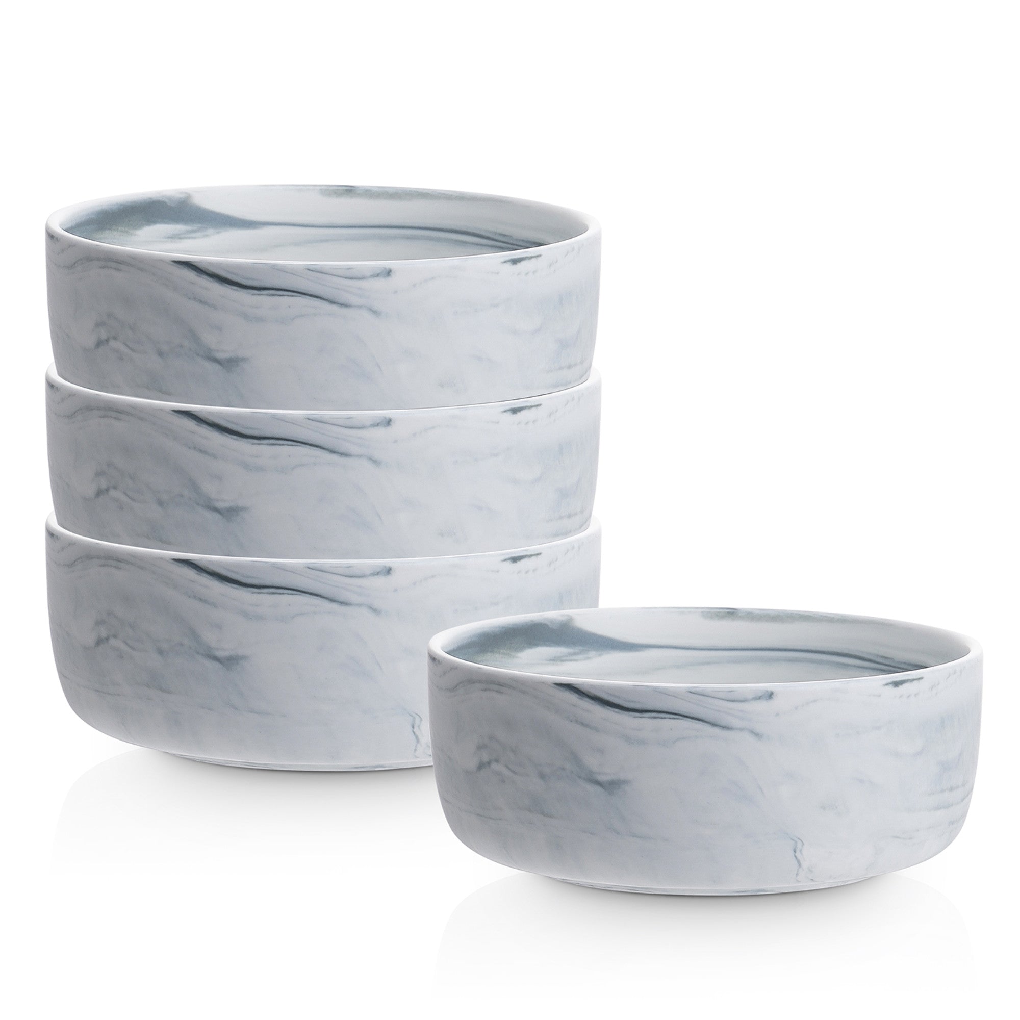Made from high – quality ceramic or porcelain with a glazed finish, these bowls have a marbleized design with dominant white and gray – blue marbling. Each bowl has a unique, organic marble pattern, adding a one – of – a – kind visual interest to your tableware. The wide, shallow shape with rounded edges is not only practical for serving soups, salads, pasta, or snacks but also maintains an elegant, modern aesthetic.