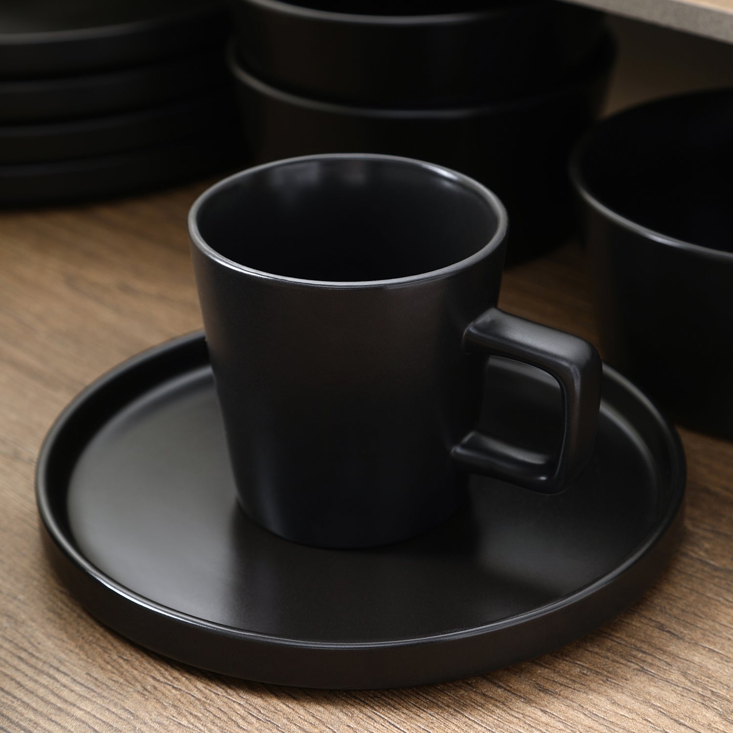 These mugs are 100% dishwasher and microwave safe, offering both convenience and durability. They are perfect for sipping coffee, tea, hot chocolate, or cold drinks, and their versatile design makes them suitable for home, office, or café settings. They can even be paired with a matching black saucer for a more formal or decorative service.