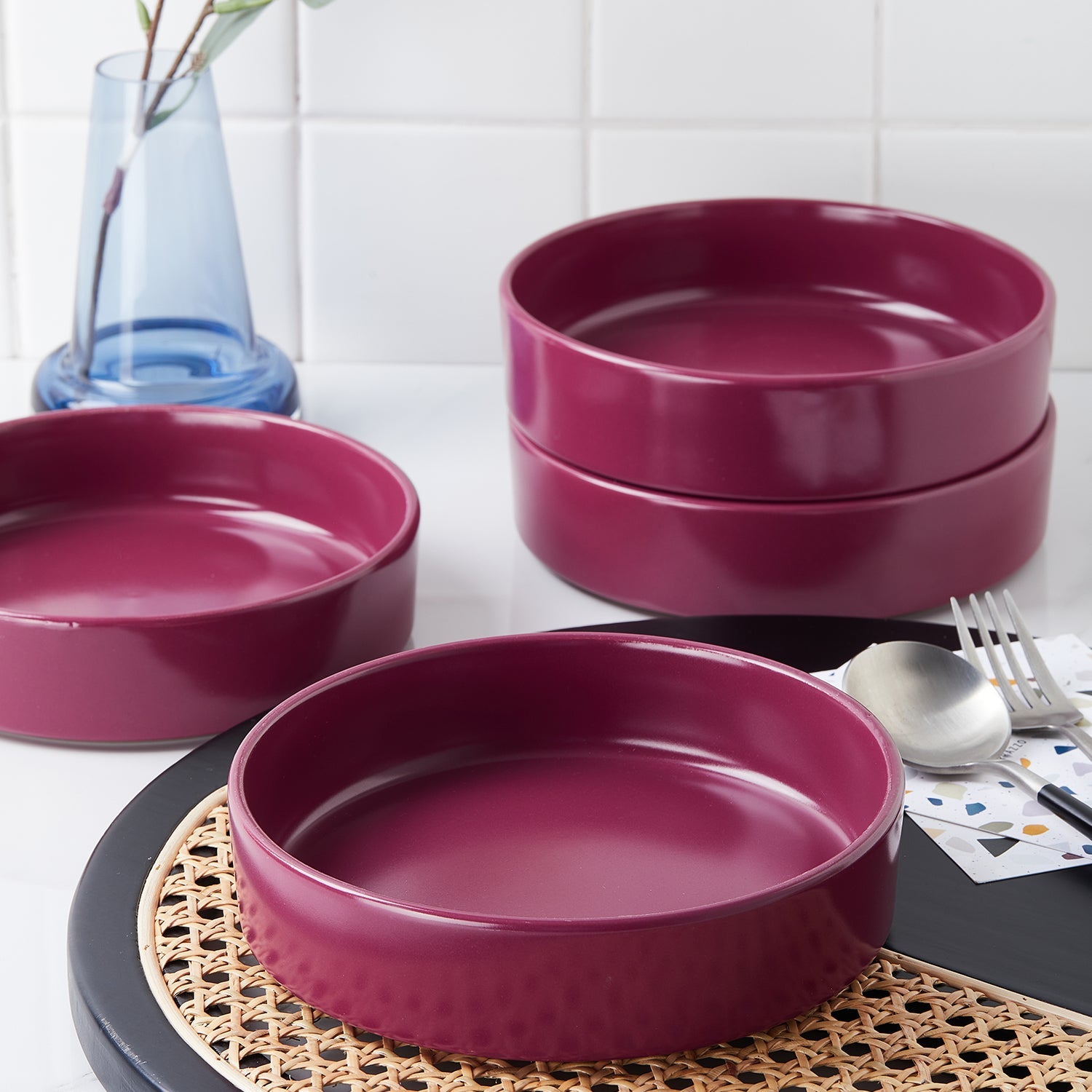 Beautiful food deserves to be served on beautiful dishes. The mercvo Lain mercvo mercvoware Dinnerware mercvo – Magenta is ready to add a subdued flair to every meal, whether it’s pasta or pot roast. This ceramic dinnerware set, with its rich magenta color, is designed for the minimalist, letting the vibrant hue do the talking. It includes everything you need for everyday dining, such as dinner plates, salad plates, mugs, and bowls.