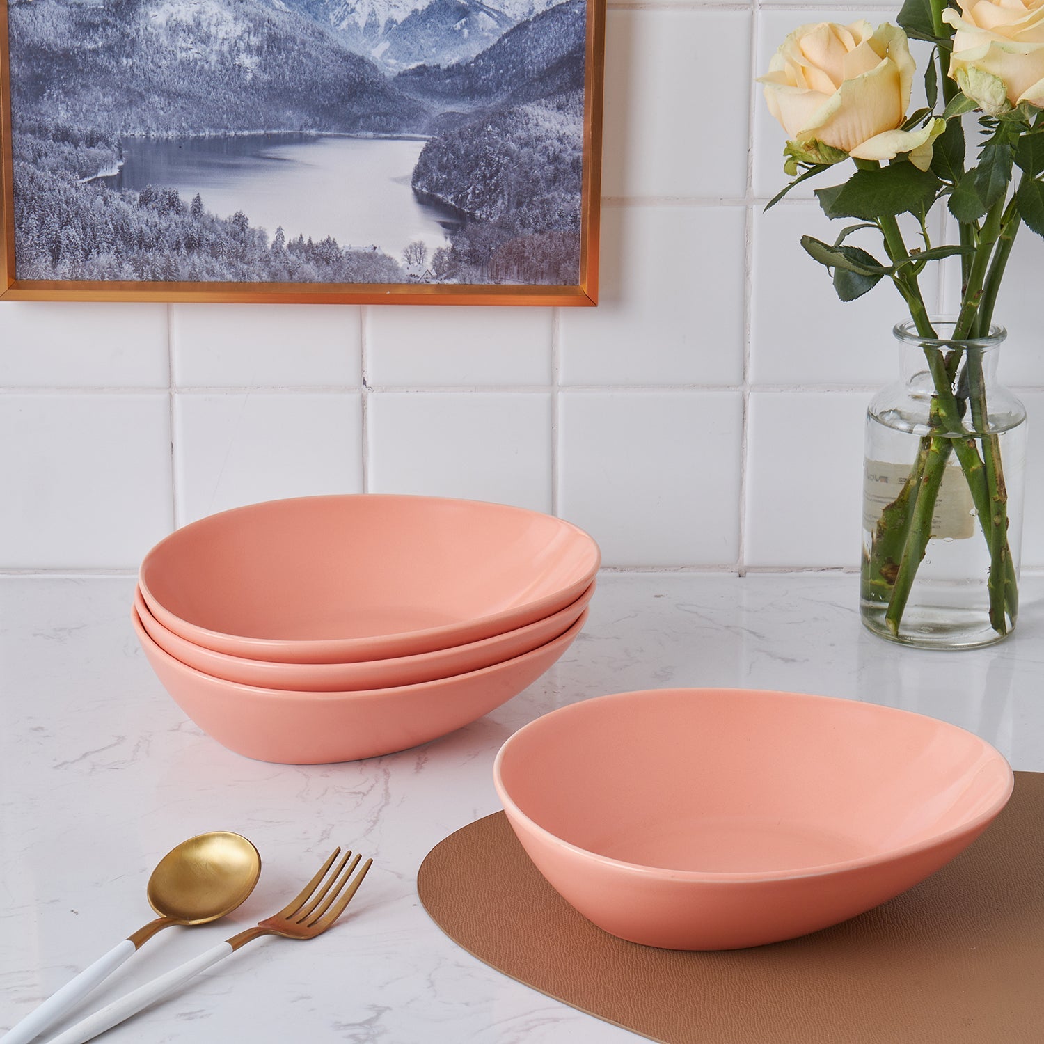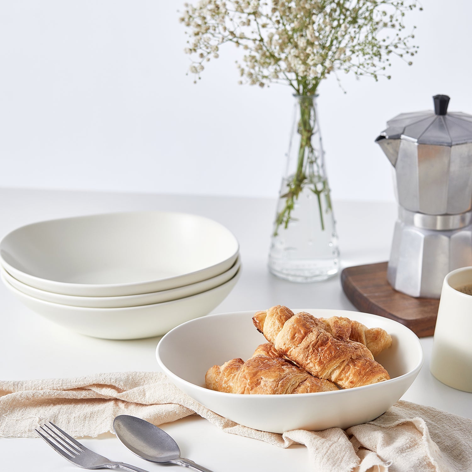 Crafted from high – quality porcelain, these bowls feature a smooth, matte finish with uniform color distribution. The organic and shallow shapes of the bowls are not only aesthetically pleasing but also ideal for various types of food. With a diameter of about 6 – 8 inches and a height of 2 – 3 inches, they are suitable for individual servings of cereal, soup, light pasta, appetizers, snacks, or breakfast items like croissants, yogurt, or oatmeal.