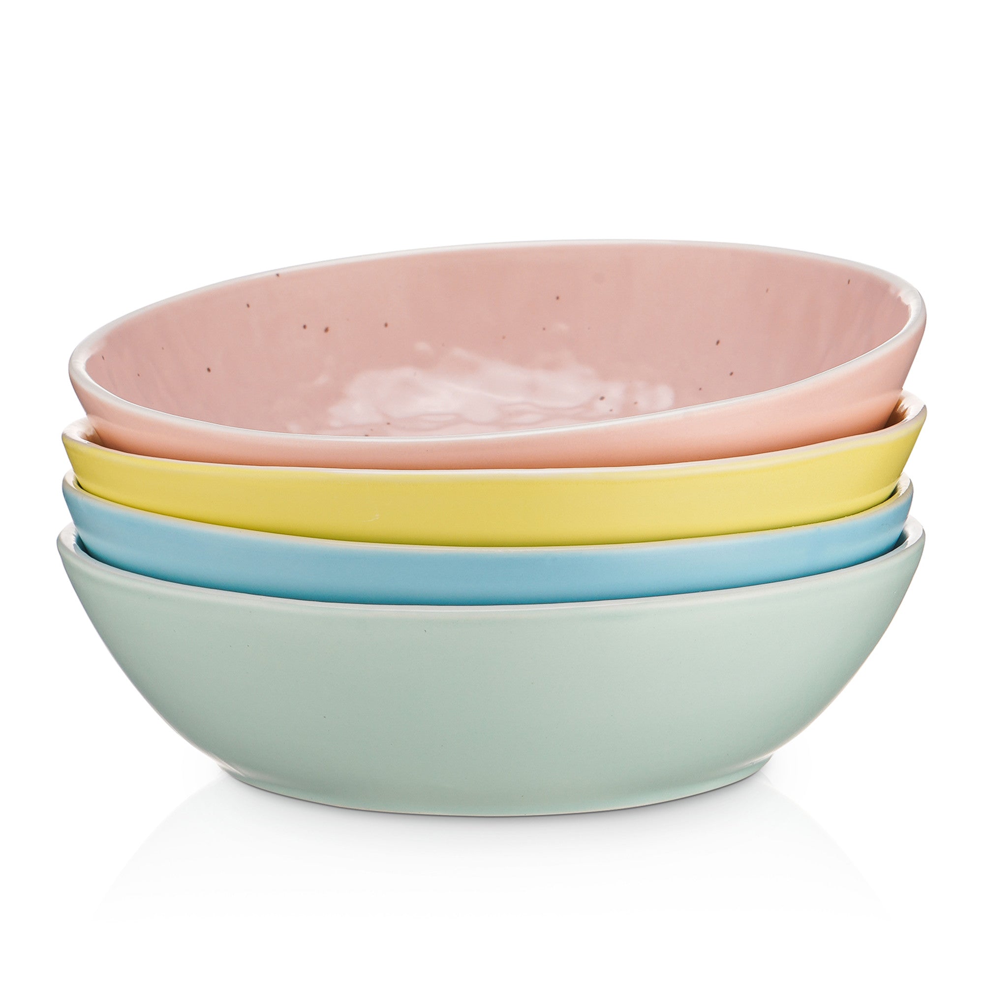 Introducing the mercvo mercvoware Bowl set, a vibrant and functional addition to your kitchen! This set of 4 nested ceramic bowls in delightful pastel hues of yellow, light pink, light blue, and mint green is a true eye – catcher. Each bowl features a speckled interior with subtle dark specks, adding a rustic and decorative touch, and is finished with a contrasting white rim around the lip for enhanced visual appeal.