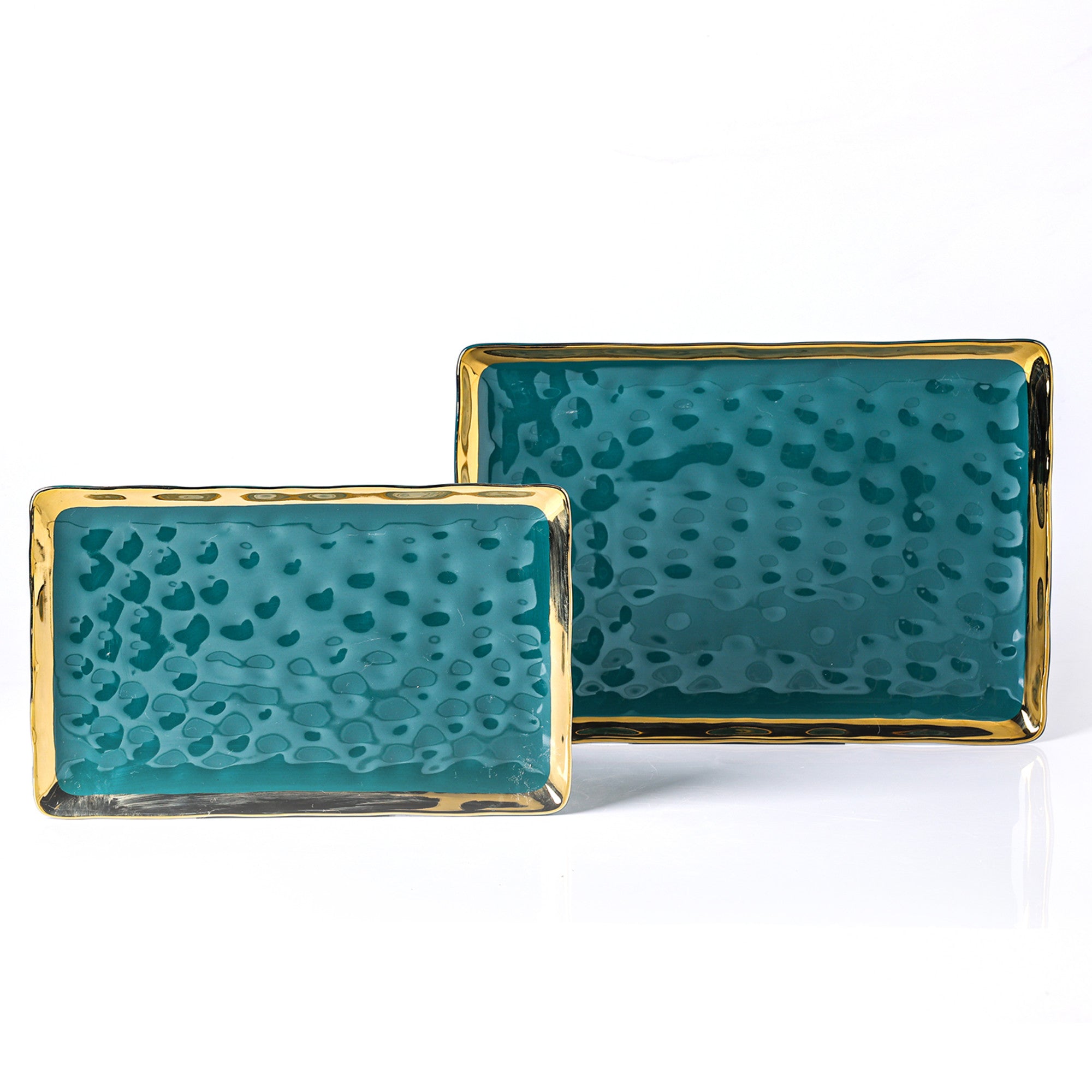 The craftsmanship of these trays is top – notch. The gold trim is evenly applied, and the interior texture is precisely formed. The teal glaze is smooth and free of cracks, while the gold trim reflects light uniformly, indicating high – quality plating or enamel. The ceramic/porcelain construction ensures sturdiness, and the gold trim is resistant to tarnishing and wear.