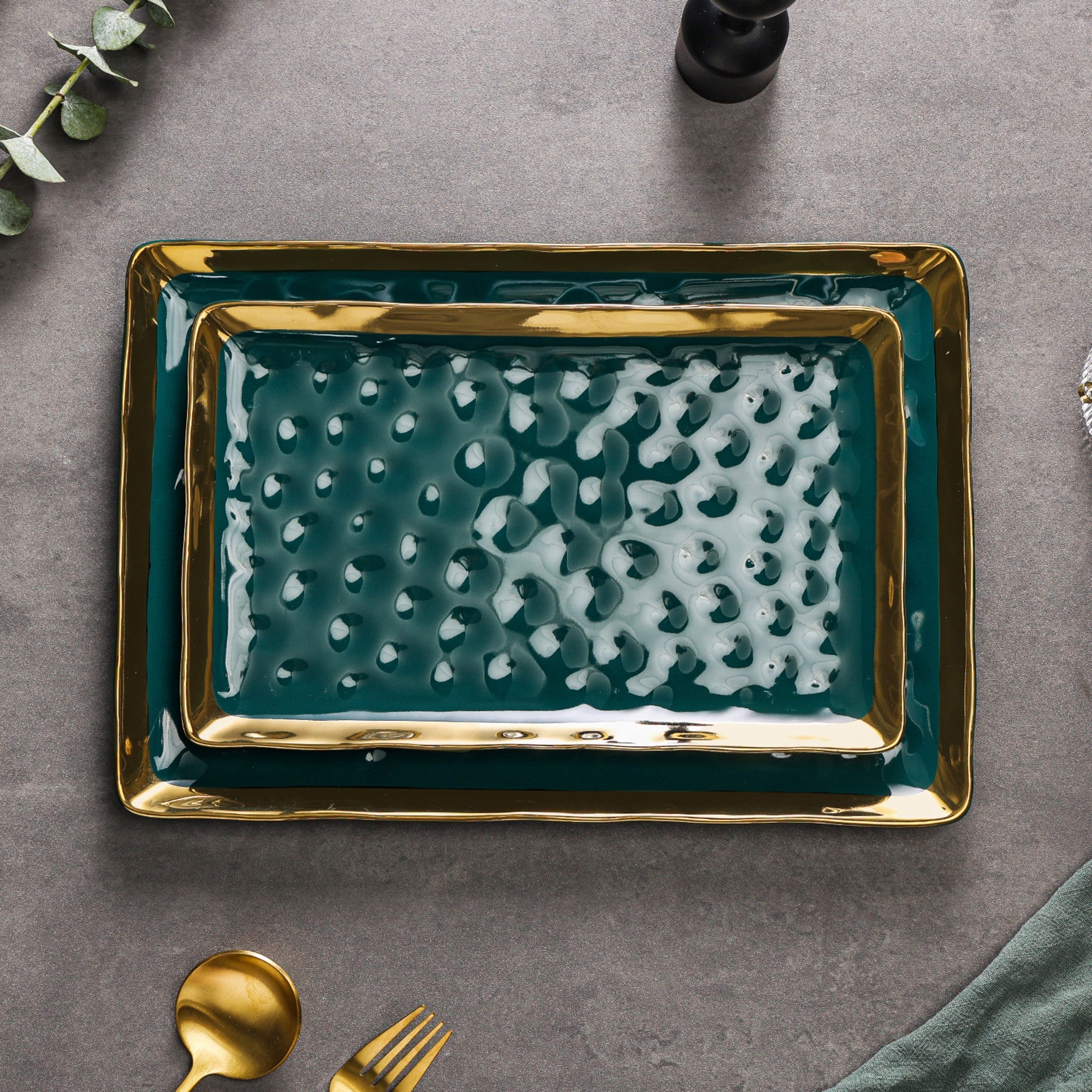 These trays are incredibly versatile. Use them as serving platters for food on your dining table, coffee table, or buffet. They also make excellent decorative display pieces for showcasing jewelry, candles, or small plants on vanity tops, entryway tables, or mantels. As part of a curated dinnerware set, they enhance the overall upscale look of table settings. Moreover, the elegant design and dual functionality make this set a thoughtful gift for housewarmings, weddings, or holidays.