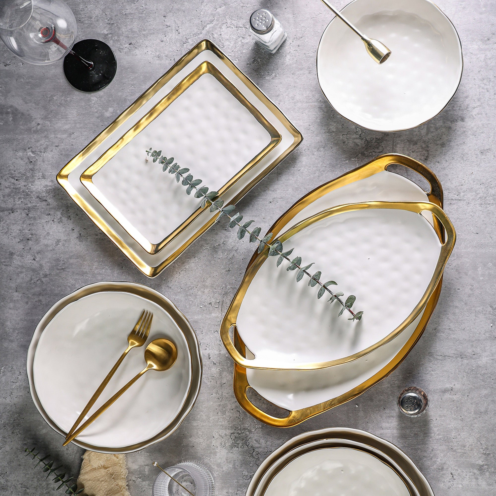 You can use this set for multiple purposes. It’s ideal for serving food at formal dinners, gatherings, or everyday meals. It can also be used decoratively, holding flowers, snacks, or serving as a centerpiece on a coffee table or sideboard. As part of a larger collection, it helps create a cohesive, upscale table setting when paired with other gold – accented pieces like gold cutlery and glassware.
