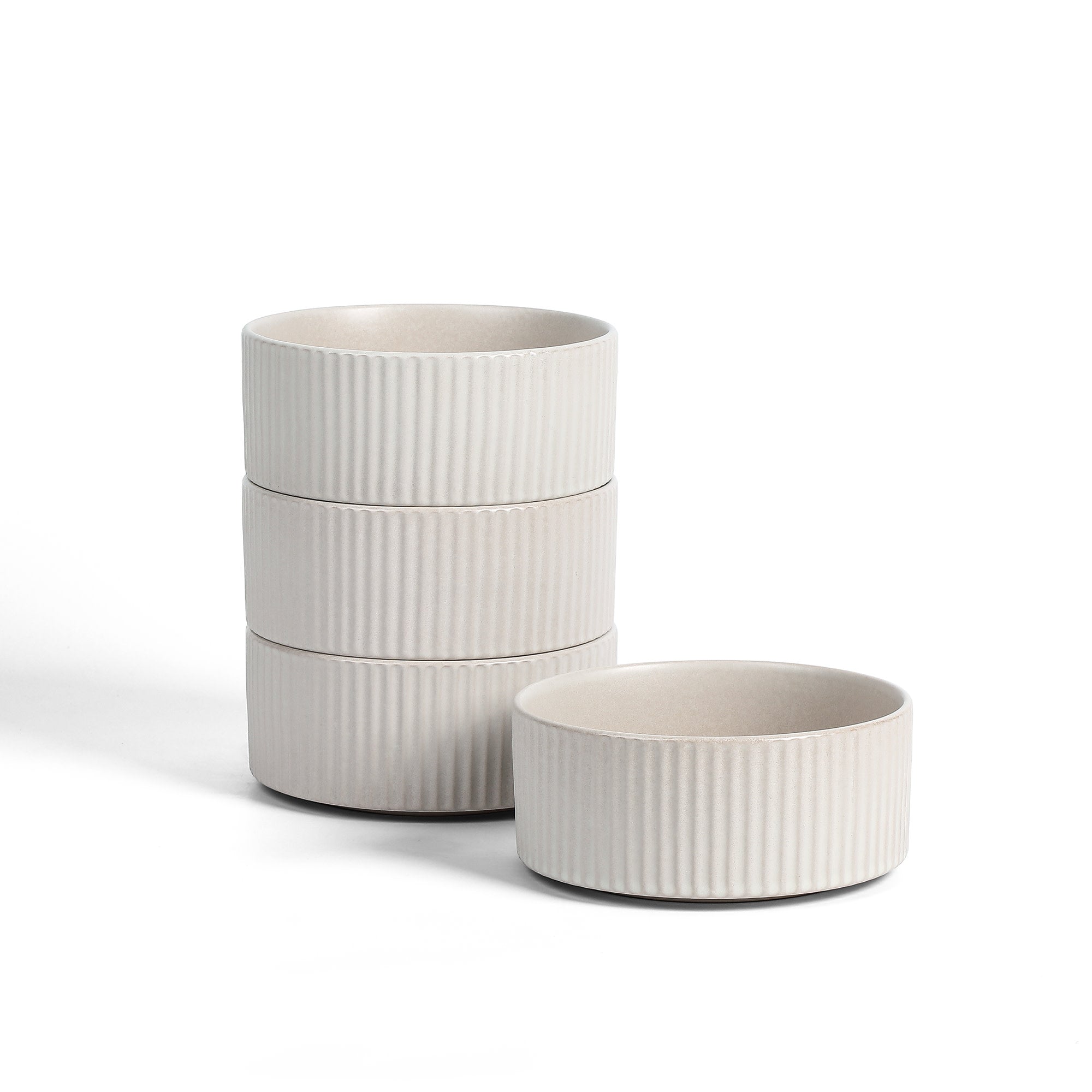 One of the standout features of this bowl is its stackability. The bowls can nest within each other and with matching plates, optimizing storage space in your kitchen cabinets. The ribbed exterior adds visual interest while maintaining a clean, minimalist aesthetic that doesn’t clash with the neutral color. The smooth interior ensures easy food removal and cleaning, and it is likely dishwasher and microwave – safe, adhering to the standards of ceramic dishware.