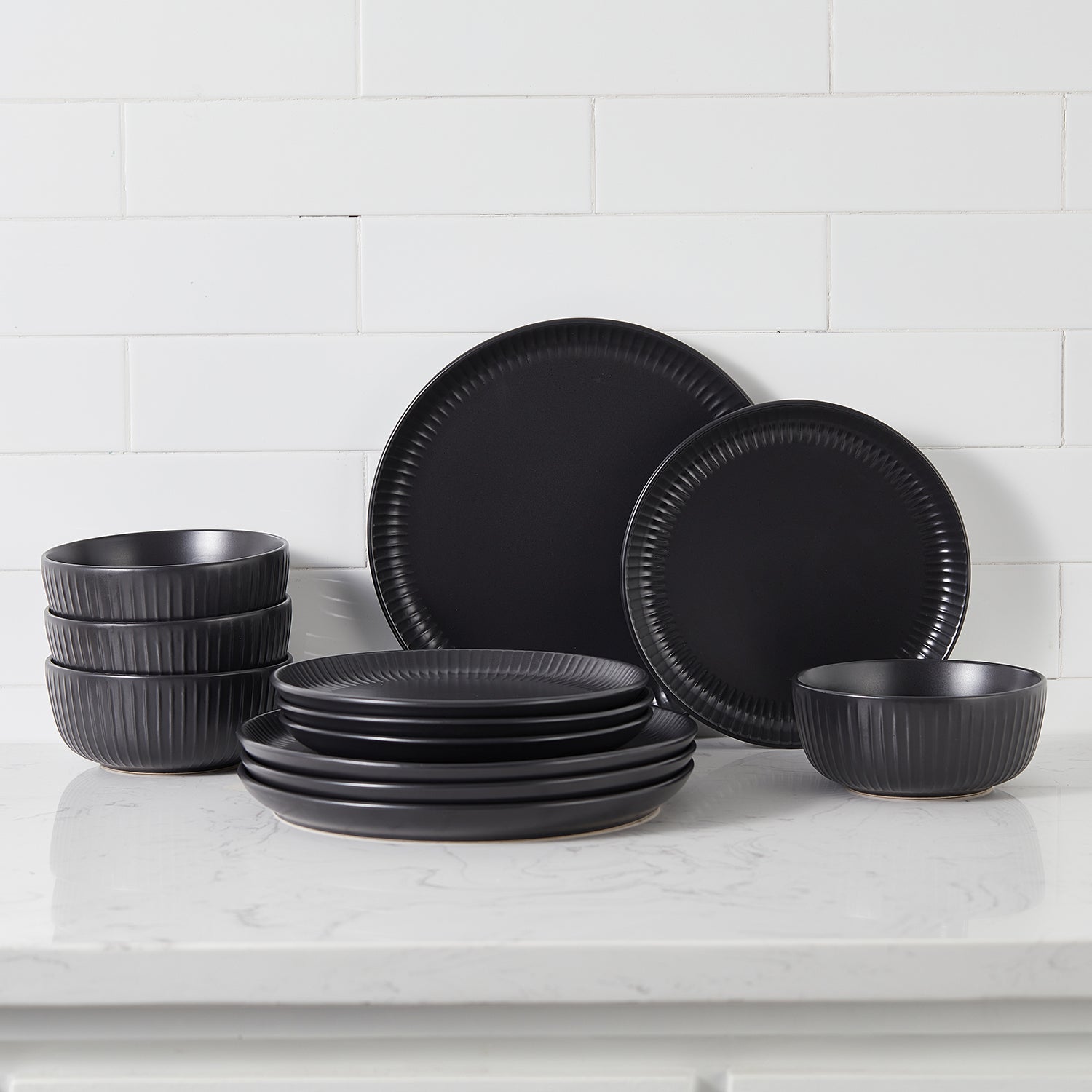 Every piece in this set is microwave and dishwasher safe. You can easily re – heat your favorite meal for a fast and convenient solution and then put the piece in the dishwasher for an easy clean – up. It’s perfect for daily dining, whether it’s plates for your main meals or salads, or bowls for soups, cereals, or side dishes. The set can also be used as part of a complete place setting, coordinated with utensils (not included). Moreover, its sleek black finish and modern design make it suitable for decorative display in styled dining areas, enhancing the overall table aesthetics.