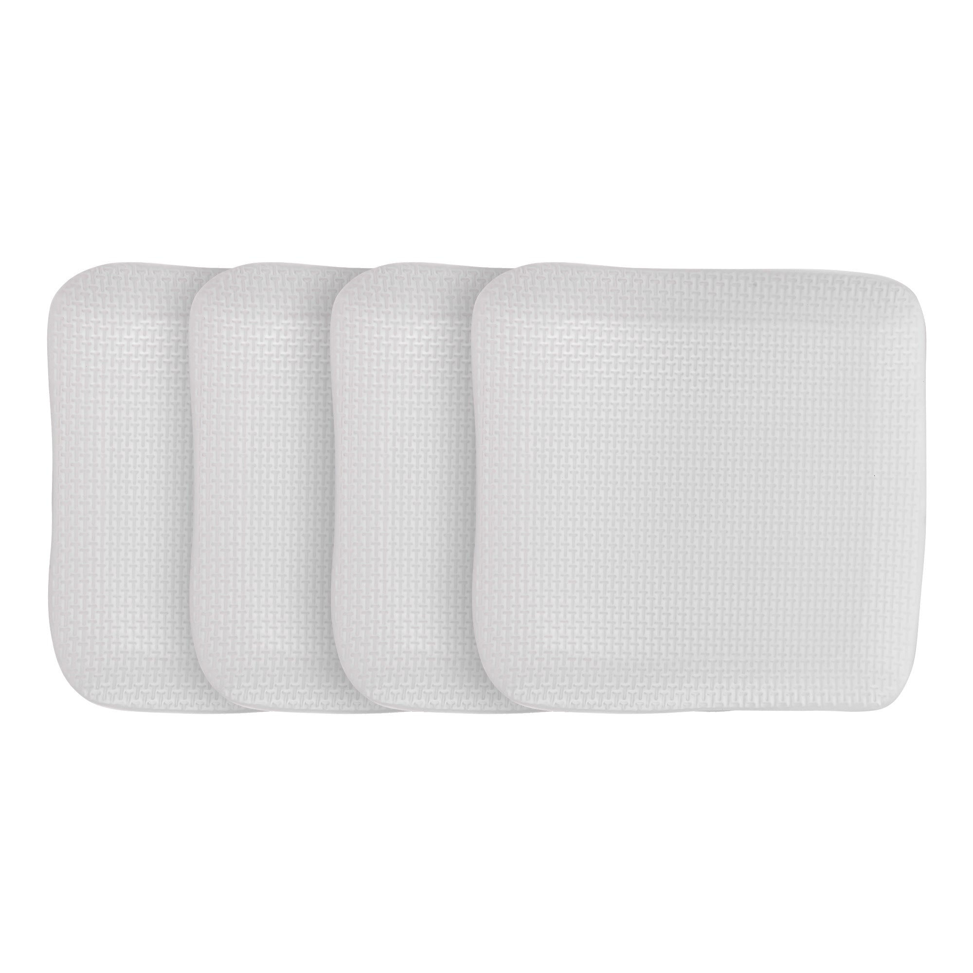 Crafted from high – quality ceramic or porcelain, these plates offer durability and heat resistance. They are 100% dishwasher and microwave safe, ensuring easy cleaning and long – lasting use. The solid white color and smooth, glossy finish give them a clean and professional look, while the subtle, embossed woven/grid pattern on the surface adds both visual interest and a tactile element. The pattern resembles a woven basketweave, providing grip and decorative depth.