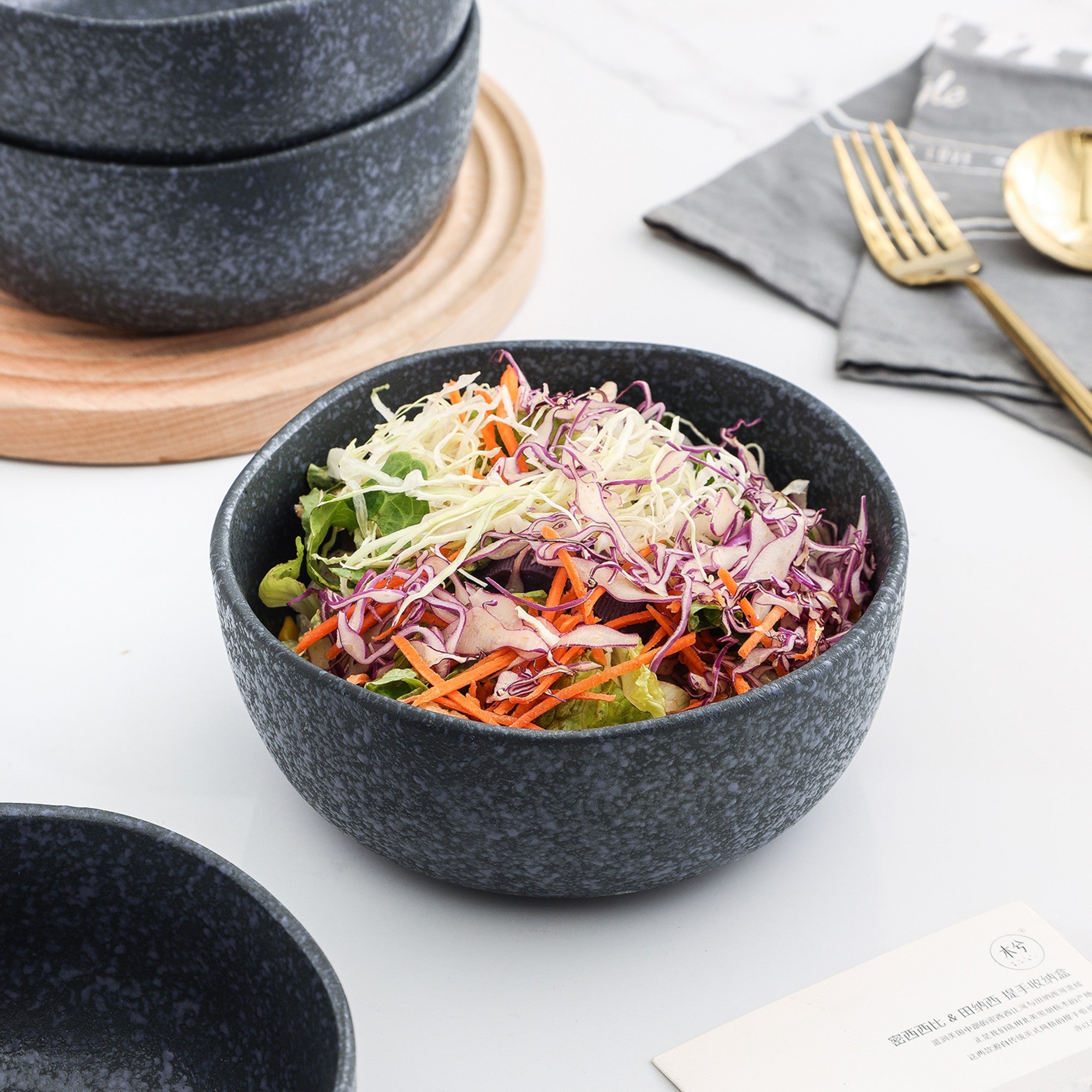 The exterior of the bowls has a matte, textured finish, while the interior is smooth and glossy, with a subtle golden rim adding a touch of elegance. This combination not only makes the bowls visually appealing but also functional. The smooth interior glaze resists food sticking, making them easy to clean, and they are suitable for daily use.