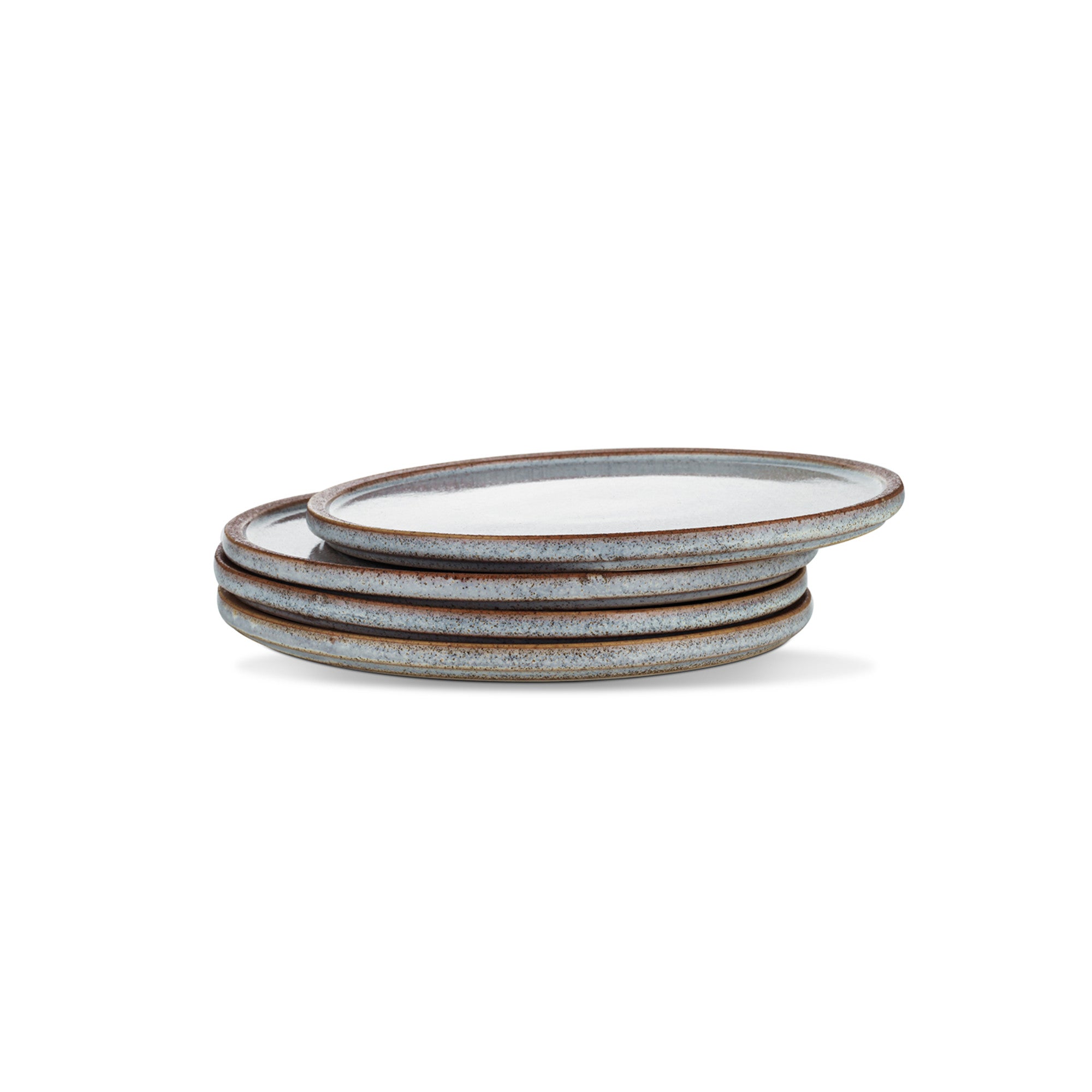 The plates feature a unique design with a white interior adorned with subtle, fine speckles in light brown or beige, creating a textured, natural look. The warm, terracotta – brown rim adds a touch of rustic elegance and provides a beautiful contrast to the white interior. The minimalist design is both versatile and stylish, fitting seamlessly into any traditional, minimal, French, or modern home or apartment.