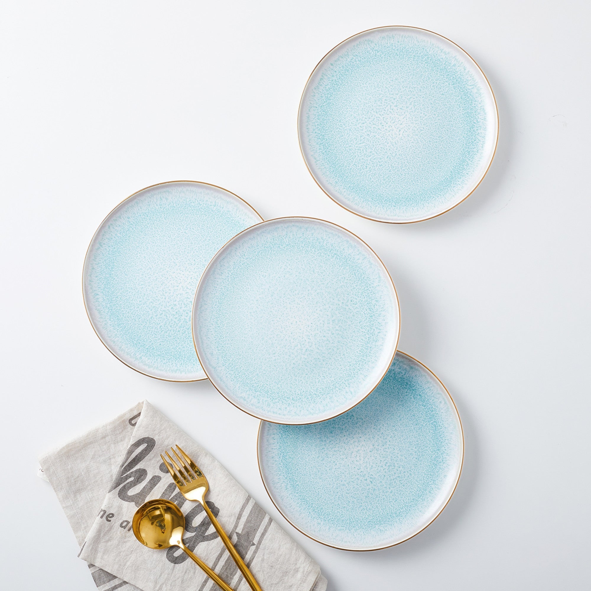 mercvo + Lain mercvo Porcelain Dinner Plate – Mint: 4 – Piece mercvo with Speckled Interior, Gold Trim, Microwave & Dishwasher Safe
