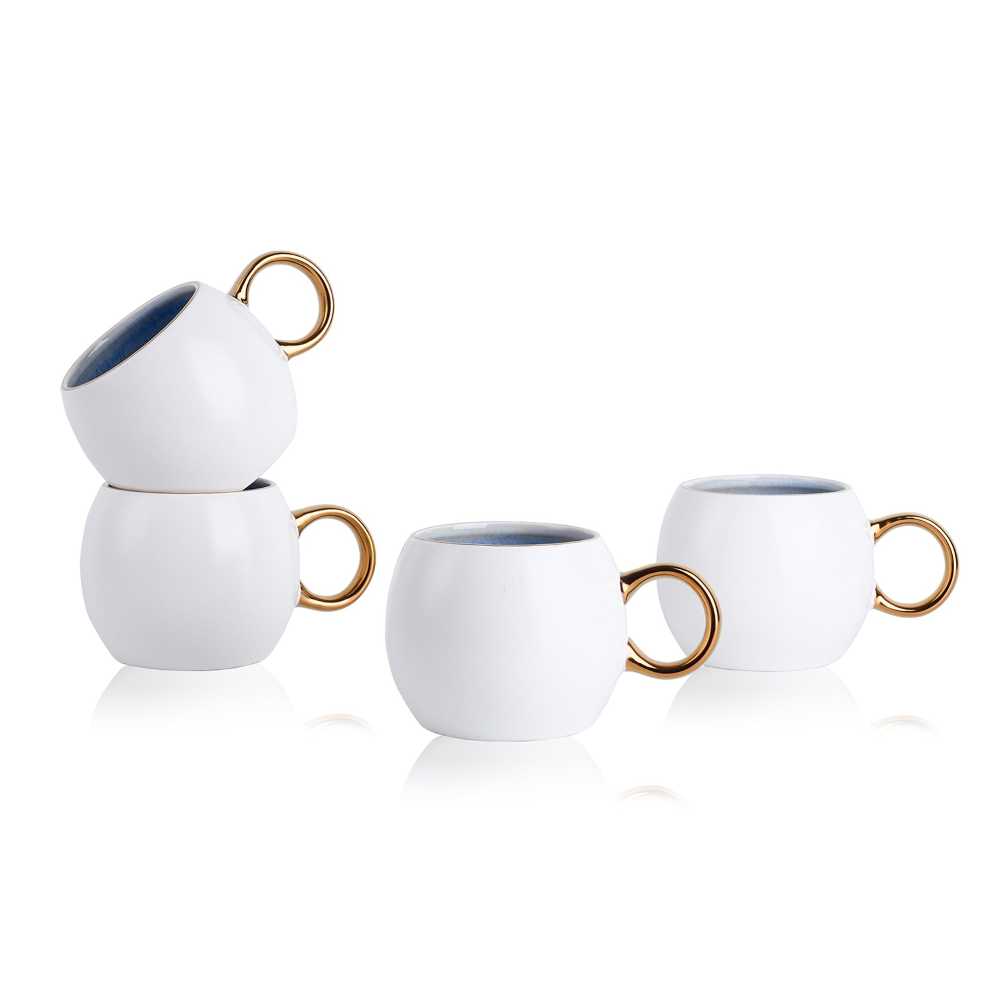 mercvo + Lain mercvo Porcelain Mug mercvo – Blue | 4 Piece mercvo with Gold Accents, Stackable Design, Ideal for Hot Beverages