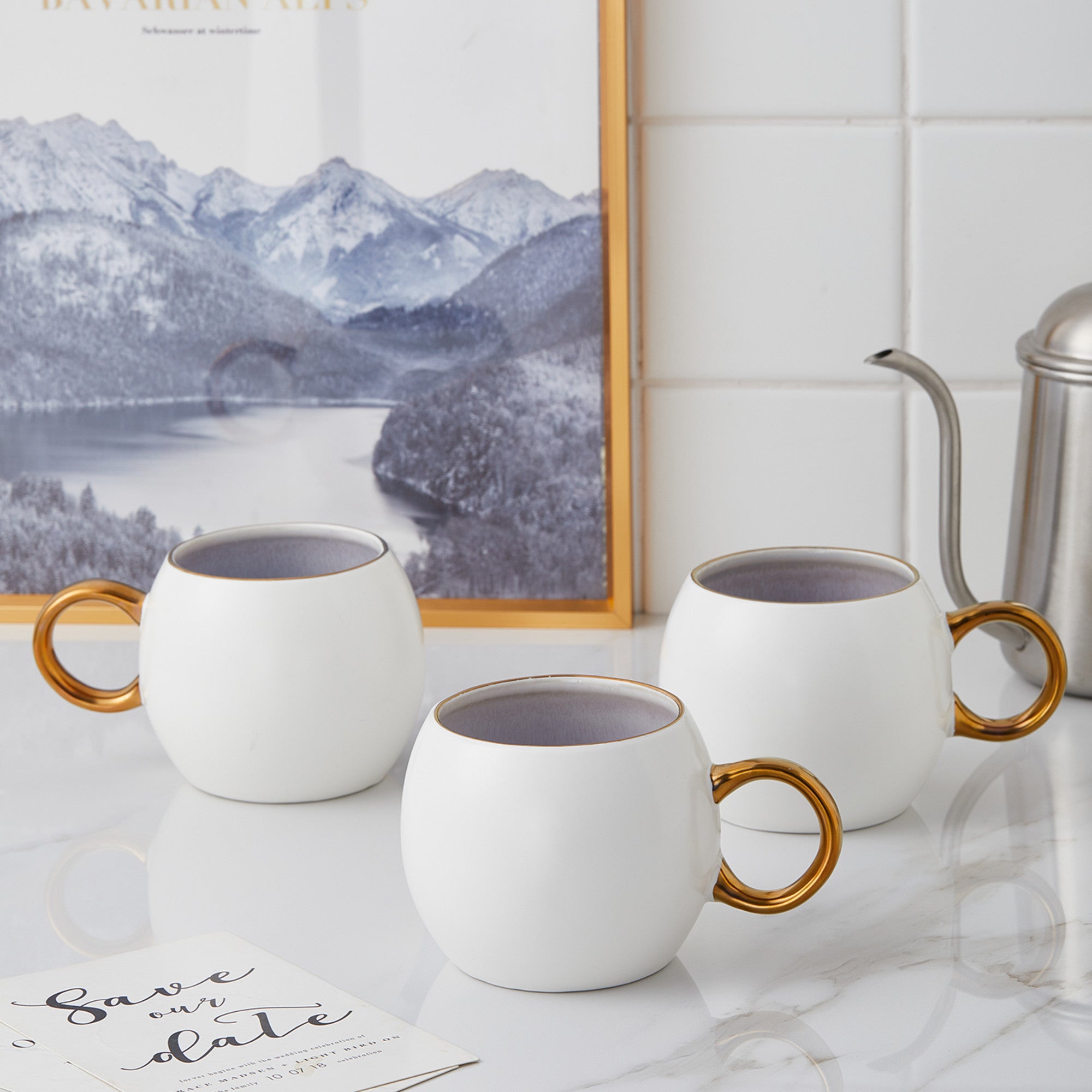 mercvo + Lain mercvo Porcelain Mug – Lavender mercvo of 4: Medium-Size Ceramic Mugs with Gold Accents for Daily Use and Decorative Dining